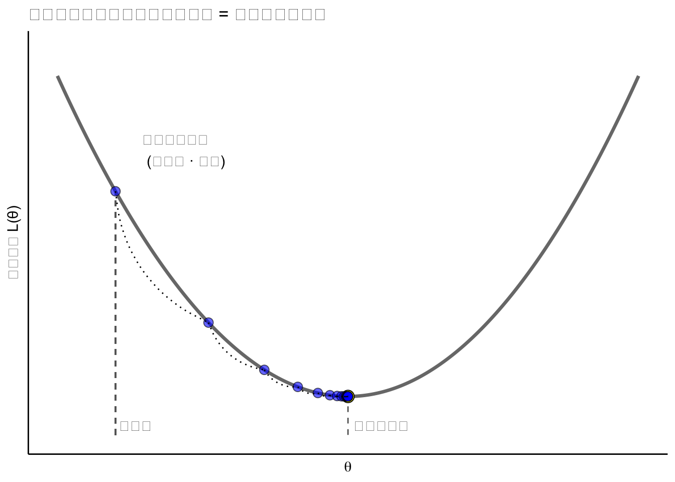 Warning in geom_segment(aes(x = theta0, xend = theta0, y = 0, yend = loss(theta0)), : All aesthetics have length 1, but the data has 201 rows.